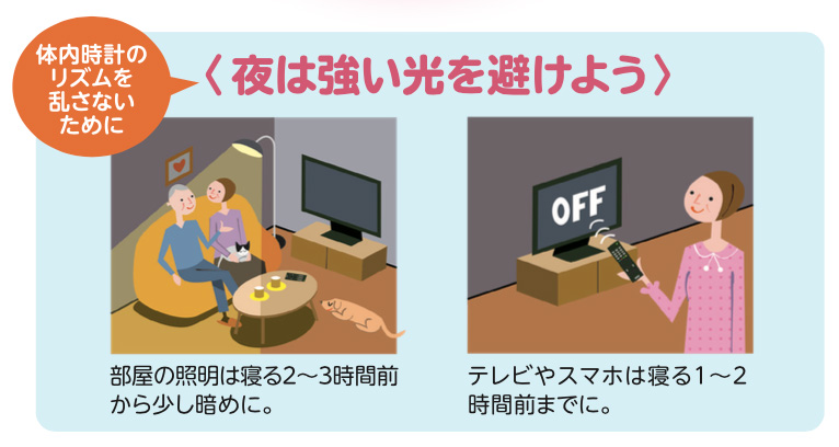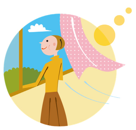 ふだんから屋外での運動をしない、日中も室内で過ごすことが多いなど、あまり日光に当たらない生活をしていると、体内時計が乱れやすくなり、生活習慣病につながることが分かっています。その体内時計のリズムを健康的な状態に戻すには、朝日を浴びるのが効果的です。