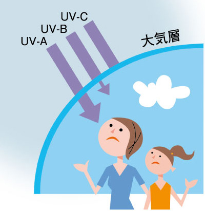 UV-C…紫外線の中でもっとも有害なC波。大気層で吸収され、地表までは届きません。