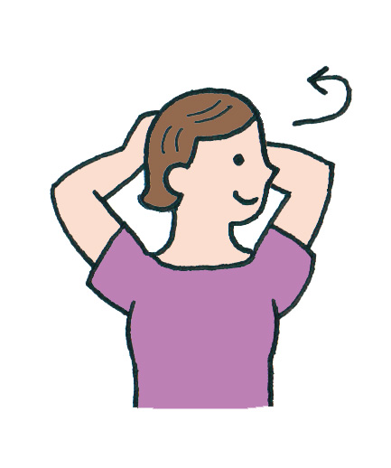 - 背筋を伸ばして頭の後ろで指を組み、肩を動かさずに左右にゆっくりと首を回す