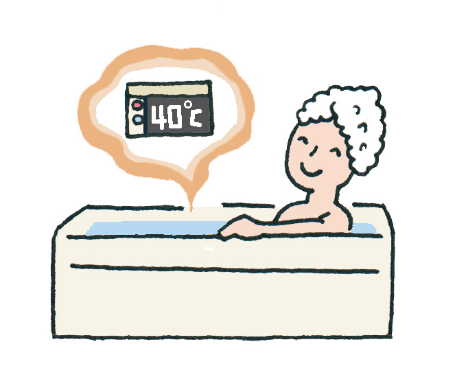 - ●ぬるめのお湯 (目安は40℃)に 浸かる