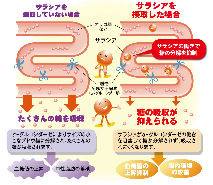【小腸でのサラシアの働き】
