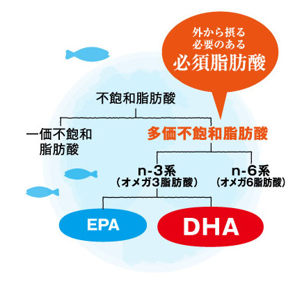 DHAは、私たちの体内では作ることができないため、食事などによって外から摂取しなければならない「必須脂肪酸」です。