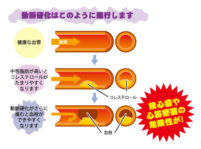 中性脂肪を低減する働きがあり、EPAとともに特定保健用食品(トクホ)の保健機能成分としても注目されています。また、DHAやEPAには血小板凝集を抑え血栓をできにくくする働きもあるなど、動脈硬化の進行を抑制し、高血圧や心筋梗塞・狭心症などの冠動脈疾患、脳梗塞といった命に関わるような生活習慣病を予防する働きが期待されています。