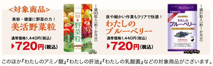 DMJえがお生活の商品をご愛用いただき、ありがとうございます。定期コースで健康食品をご継続いただいているお客様には、感謝の気持ちを込めて「ずっと半額キャンペーン」を実施しています。